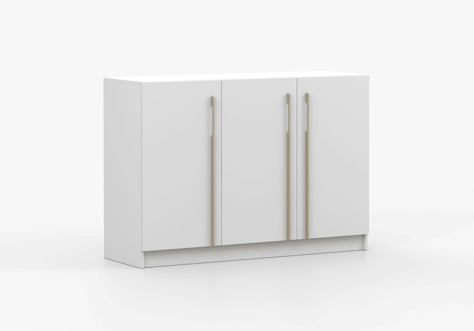 Die Kommode Glamy 3D verfügt über geräumige Ablagefächer hinter drei klassisch öffnenden Türen, die für optimalen Stauraum und einfachen Zugriff sorgen.