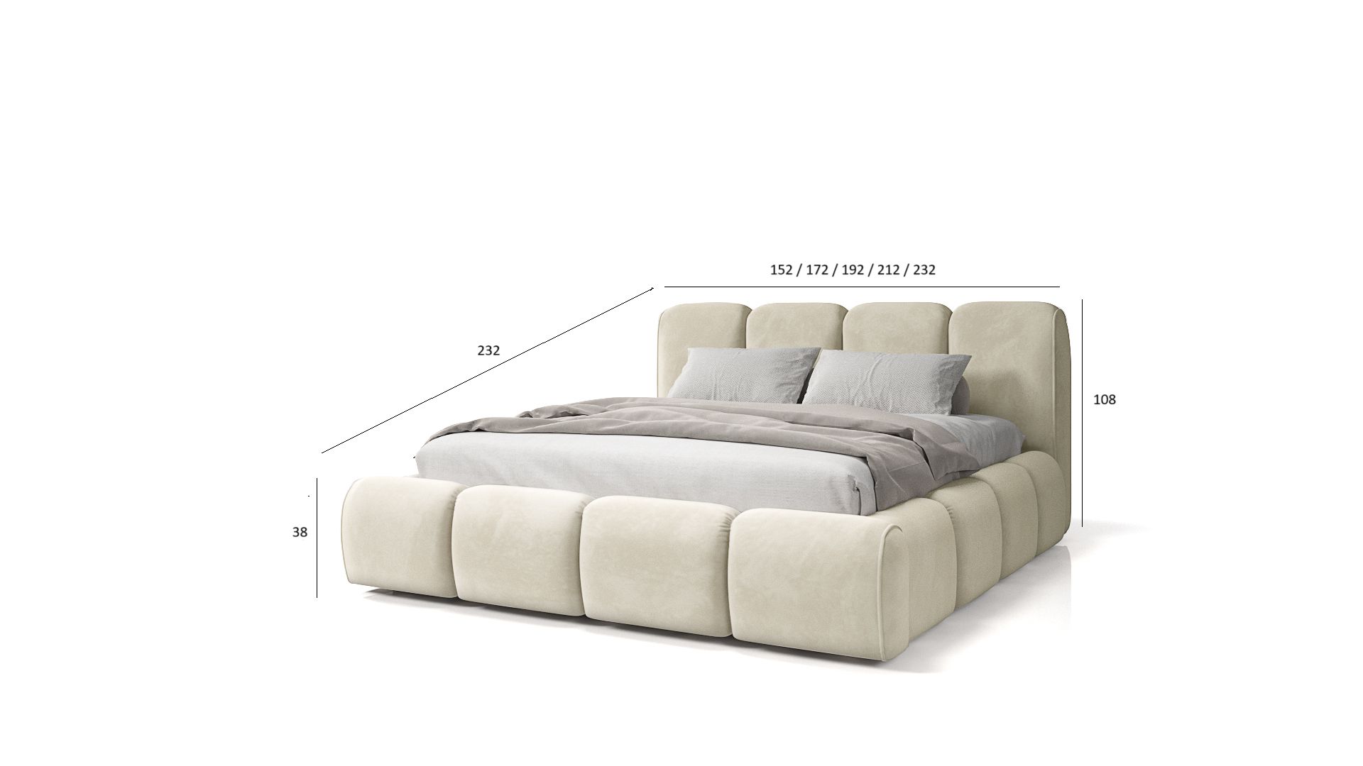 Das Bett Arbis ist die perfekte Kombination aus Solidität, Komfort und Stil. Aus hochwertigen Materialien gefertigt, ist es ein elegantes Element für jedes Schlafzimmer, das sowohl durch sein Aussehen als auch durch seine Funktionalität besticht. Der dicke Schaumstoff, die dekorativen Nähte und die solide Konstruktion machen das Bett Arbis zur perfekten Wahl für alle, die eine luxuriöse Erholung schätzen.
