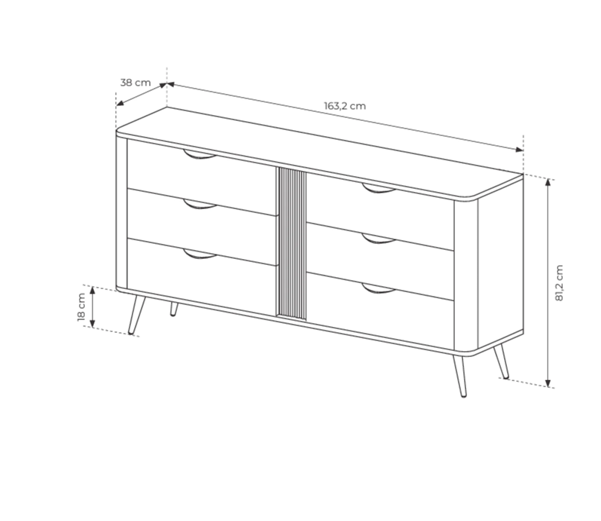 Ob im Schlafzimmer als Kommode für Kleidung, im Wohnzimmer als Stauraummöbel oder im Flur als praktisches Ablageelement – die Kommode LARON 163 6s passt sich flexibel Ihren Wohnbedürfnissen an. Kombinieren Sie sie mit weiteren Möbeln der Serie, um ein harmonisches Gesamtbild zu schaffen und Ihrem Zuhause eine moderne, elegante Note zu verleihen.