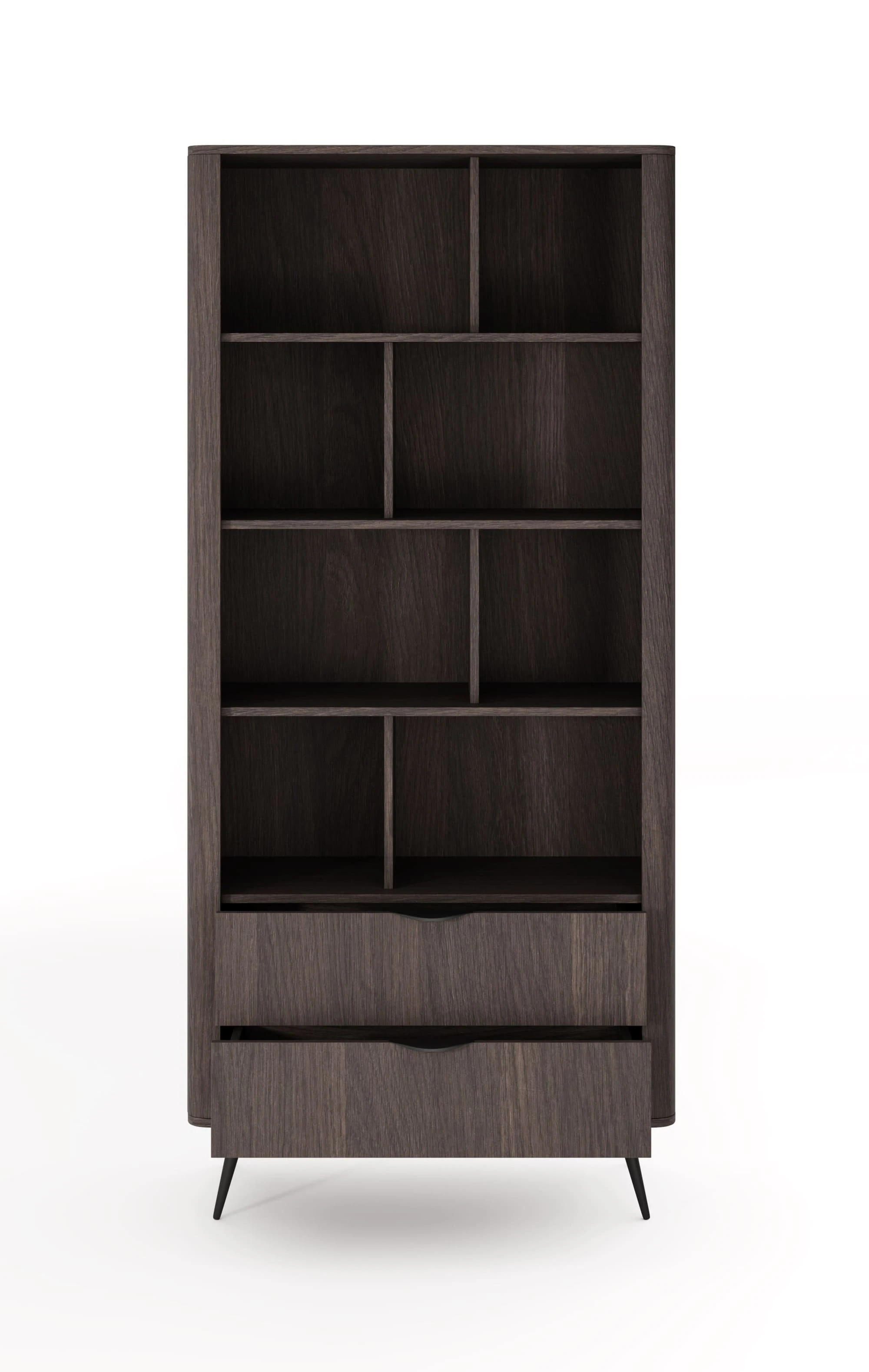 Dank der zwei großzügigen Schubladen mit kugelgelagertem Vollauszug bietet das Regal nicht nur ästhetische, sondern auch praktische Vorteile. Bücher, Deko oder persönliche Gegenstände finden hier ihren stilvollen Platz. Die robuste Verarbeitung mit ABS-Kanten sorgt für Langlebigkeit und Stabilität, während das Design vielseitig kombinierbar bleibt – ob im Wohnzimmer, Arbeitszimmer oder Flur.