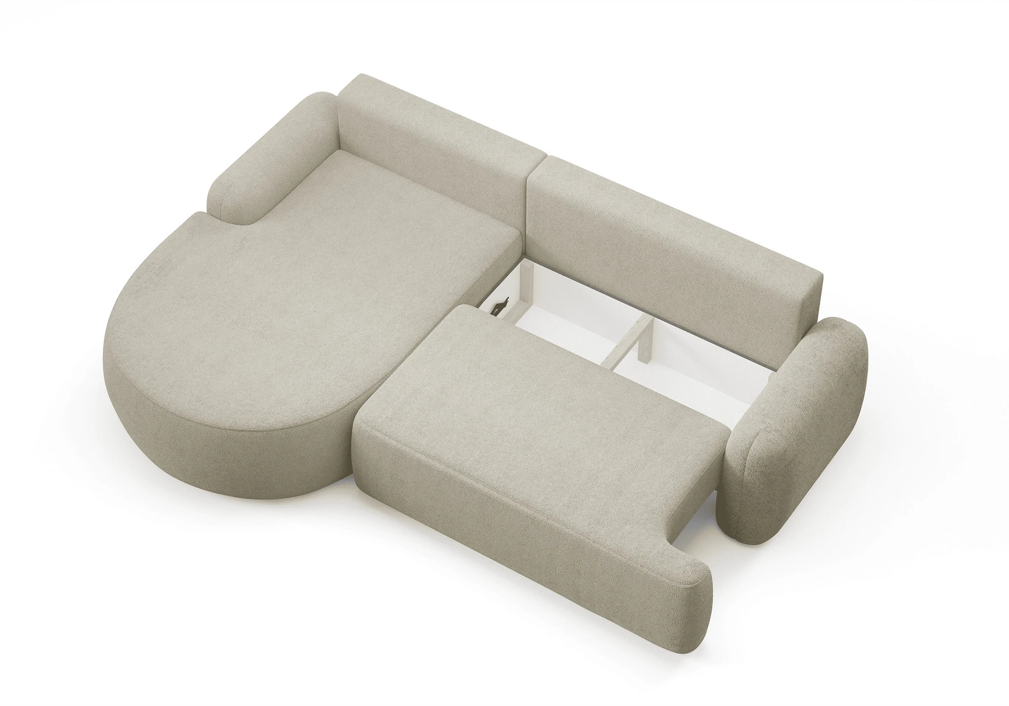Das Ecksofa GOMI vereint modernes Design mit hoher Funktionalität. Seine markante Form und der universelle Look passen sowohl zu minimalistischen als auch zu gemütlichen Wohnräumen. Ideal für Familien oder Gäste bietet es ausreichend Platz zum Sitzen und Entspannen.