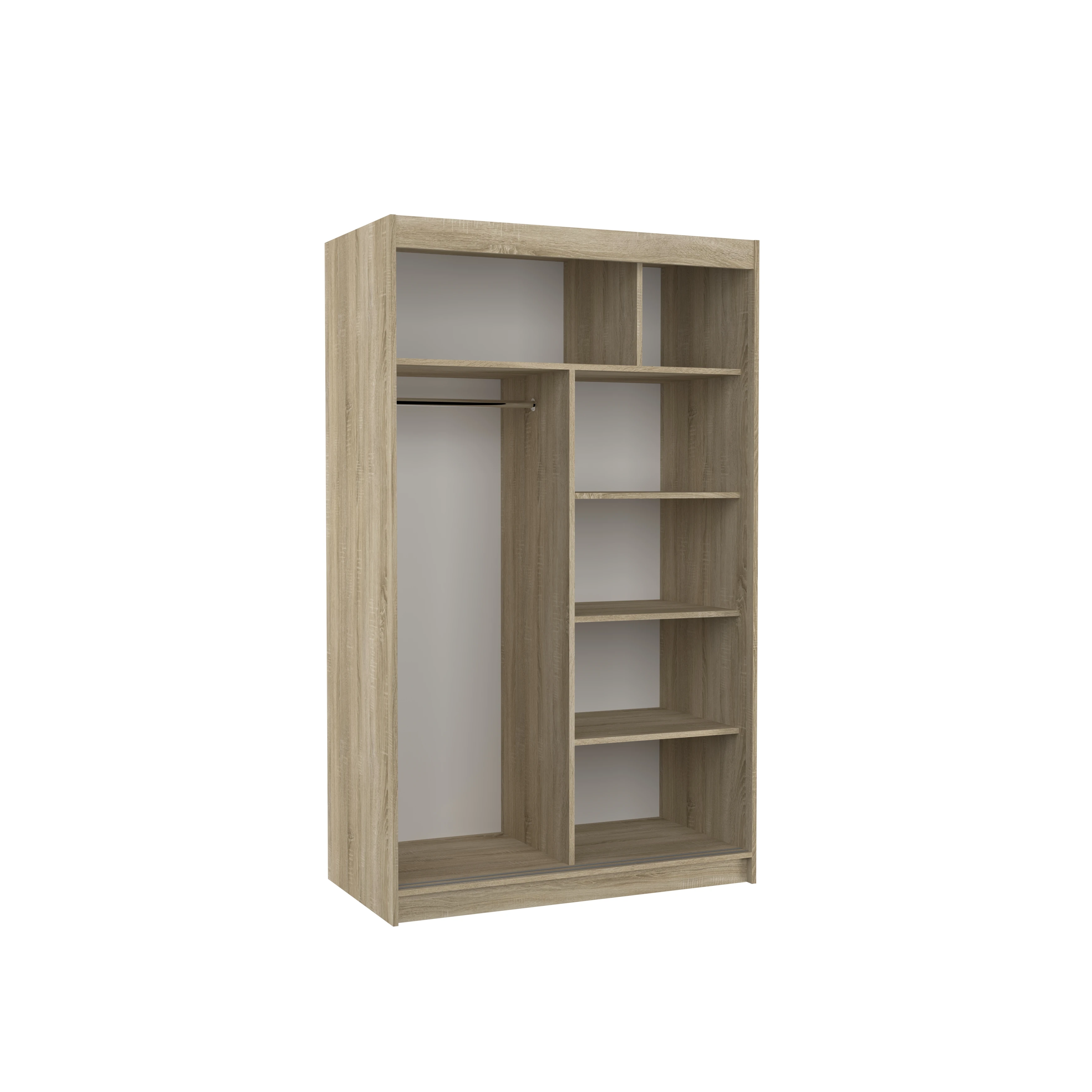 Dank der platzsparenden Schiebetüren eignet sich der Schrank ideal für kleinere Räume, schmale Flure oder kompakte Schlafzimmer. Kein zusätzlicher Platzbedarf beim Öffnen – einfach komfortabel und praktisch im Alltag.