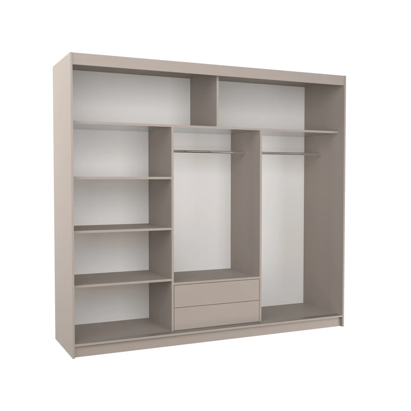 Der Schwebetürenschrank VALENTIS 235 vereint stilvolles, modernes Design mit höchster Funktionalität. Mit einer Breite von 235 cm bietet er großzügigen Stauraum für Kleidung, Accessoires und Alltagsgegenstände. Ob im Schlafzimmer, Flur oder Ankleidezimmer – dieser Schrank schafft Ordnung und sorgt gleichzeitig für eine elegante Atmosphäre.