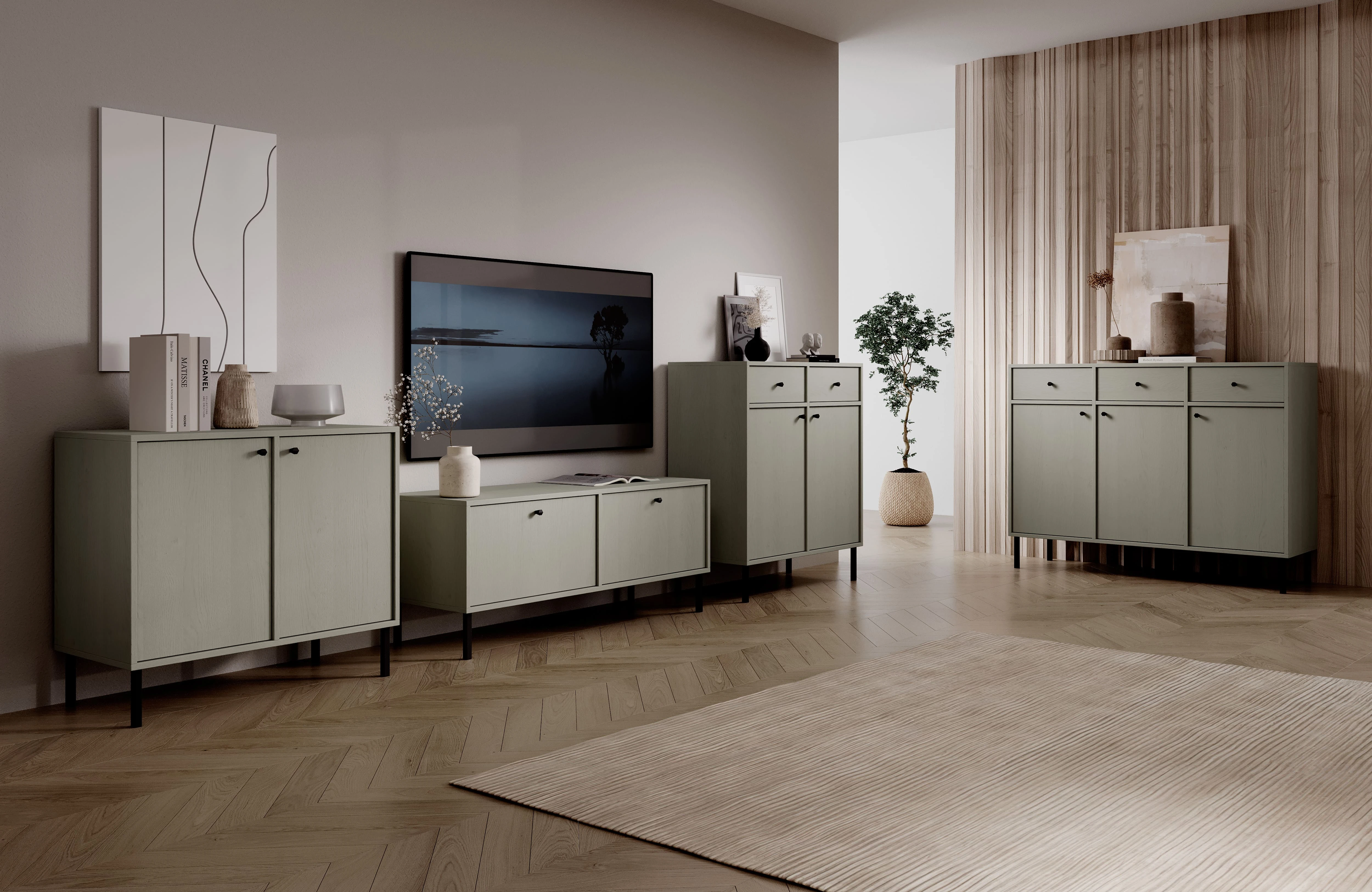 Die Kommode 2D FREYA verbindet Ästhetik mit praktischem Stauraum und sorgt für ein aufgeräumtes, stilvolles Zuhause. Wählen Sie Ihre Lieblingsfarbe und genießen Sie ein modernes und zugleich gemütliches Wohnambiente.